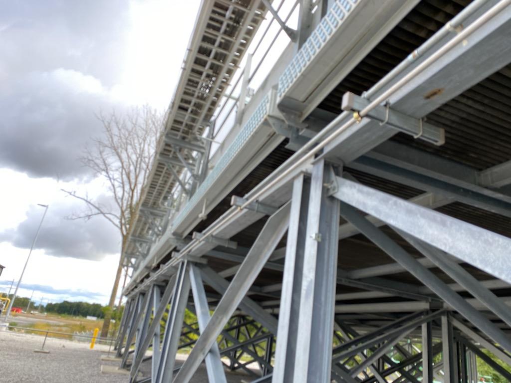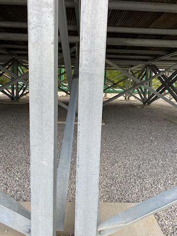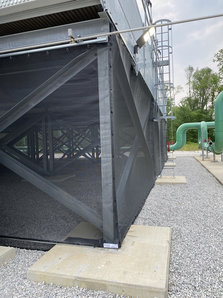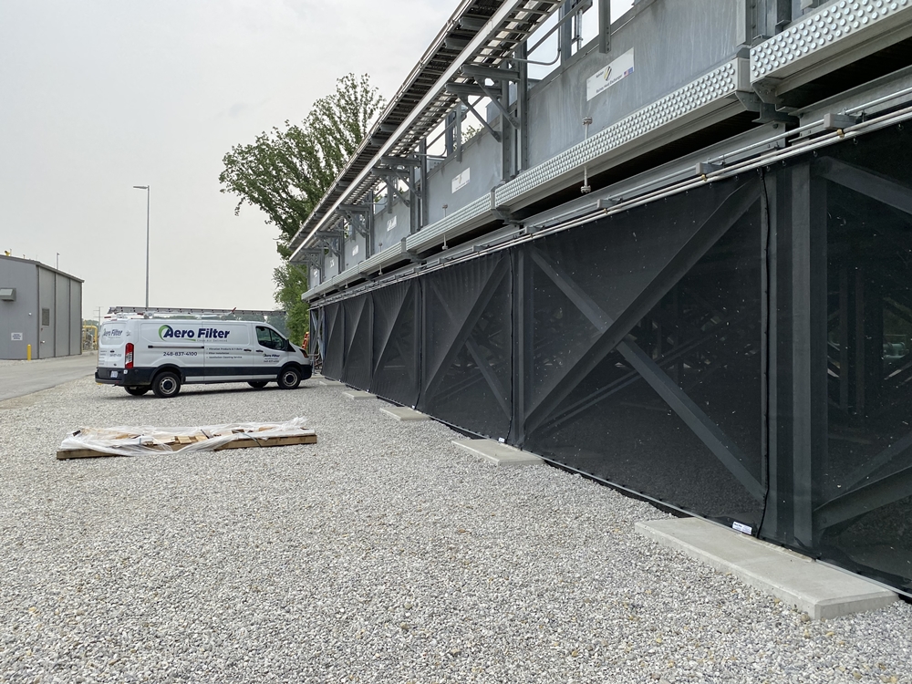 Galvanized track system installed to accommodate roller hooks from which filters are suspended;