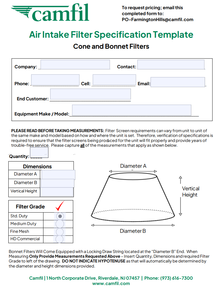 NEW! Forms Fill and Send Air Intake Filter Specification Templates are Designed To Help You Speed Up the Process of Requesting a Quotation.